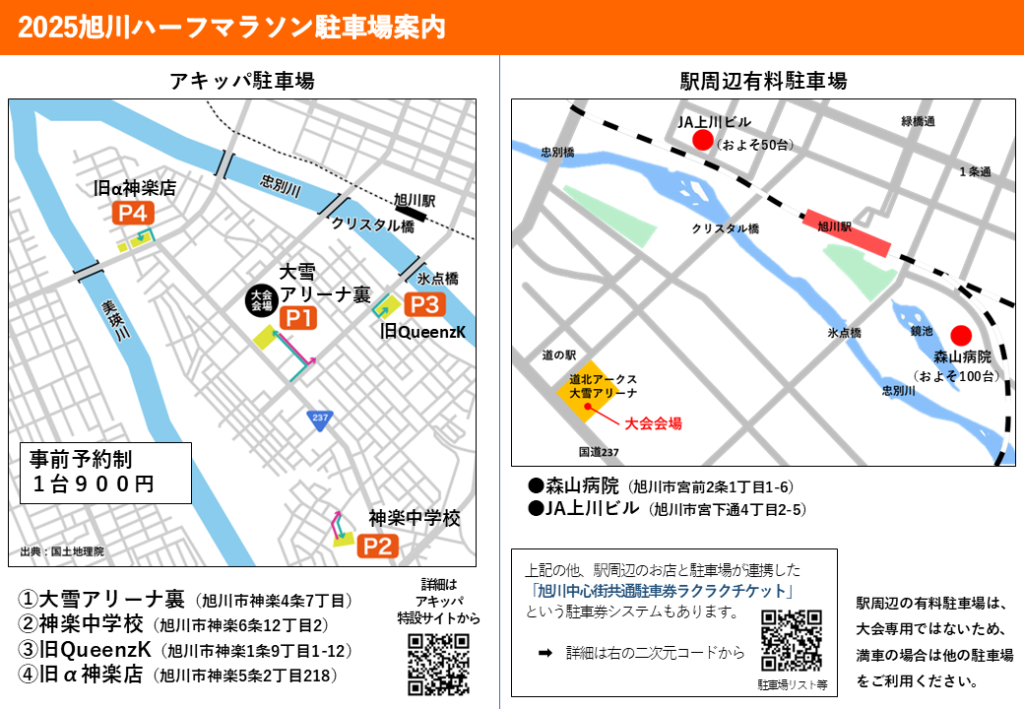 なお、駐車場を予約できなかった方や応援等で来場される方には、旭川駅周辺の有料駐車場をご案内します。